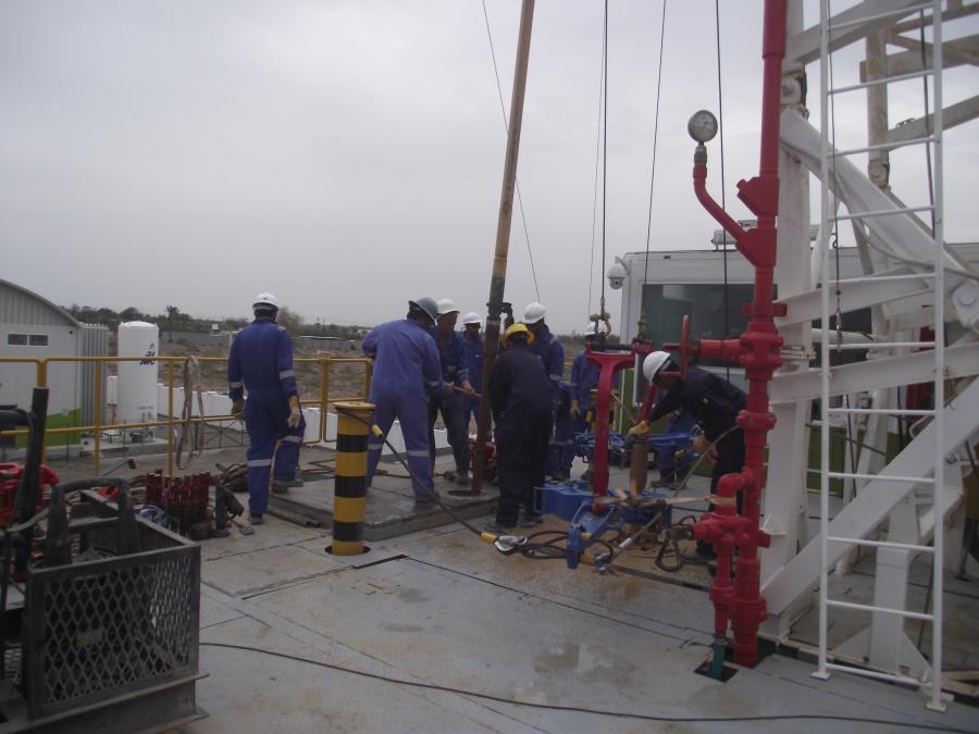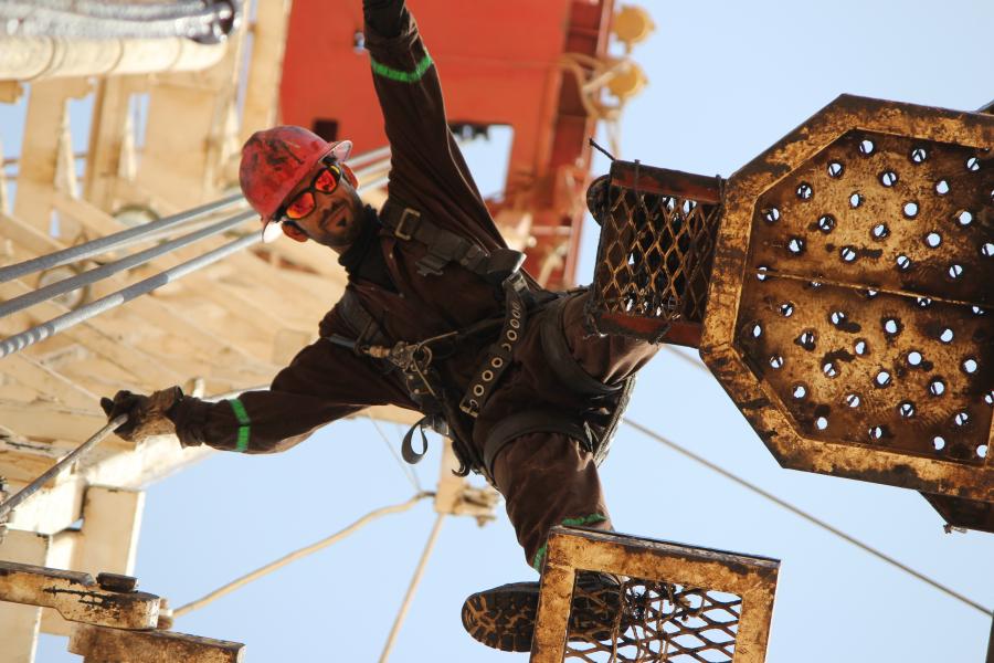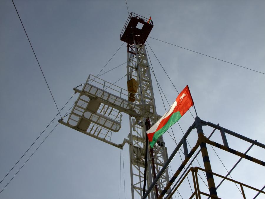 Several oil pumps operating in a vast, sandy desert landscape under a hazy sky. Oil pumps scattered across a vast, sandy desert landscape under a hazy sky. Group of workers in helmets and uniforms posing outdoors at an industrial site. Group of oil rig workers posing together outdoors in safety gear and helmets. Oil pumpjacks silhouetted against an orange sunset sky. Oil drilling rig silhouetted against an orange sunset sky. Oil drilling rig silhouette at sunset with orange sky and sun low on the horizon. Tall drilling rig structure against a cloudy sky, viewed from below. Tall oil drilling rig and pumpjack set against a cloudy sky. Two workers in safety gear operate machinery on a metal platform outdoors. Workers in blue uniforms and helmets on an outdoor industrial oil rig platform. Four men wearing hard hats and sunglasses standing together outdoors at a worksite. Four men standing in a classroom with whiteboards and fluorescent lights. Workers in blue coveralls and helmets gathered on an oil drilling rig platform. Workers in safety gear gather around equipment on an oil rig platform. Oil rig structure with a red, white, and green flag against a clear sky. Man standing on a platform near an Omani flag and a tall metal structure. Looking down a deep construction shaft with metal beams and sandy ground below. Worker wearing safety gear climbing metal structure outdoors. Oil rigs silhouetted against an orange sunset sky. Workers in blue uniforms and helmets gathered on an outdoor industrial site. Workers in blue coveralls and helmets standing on an oil rig platform. People in work attire sitting around a conference table in a meeting room. Workers in blue coveralls and helmets standing on an oil rig platform. Workers in safety gear operating machinery on an oil rig platform.