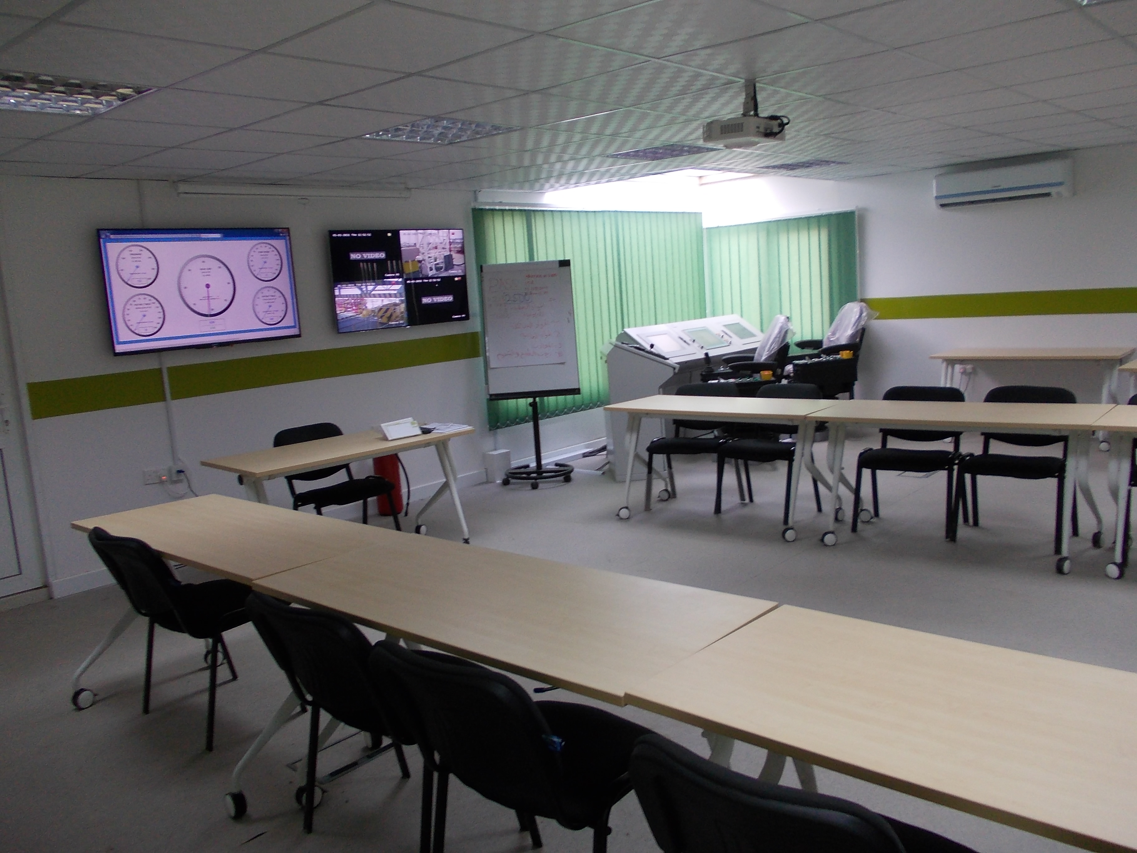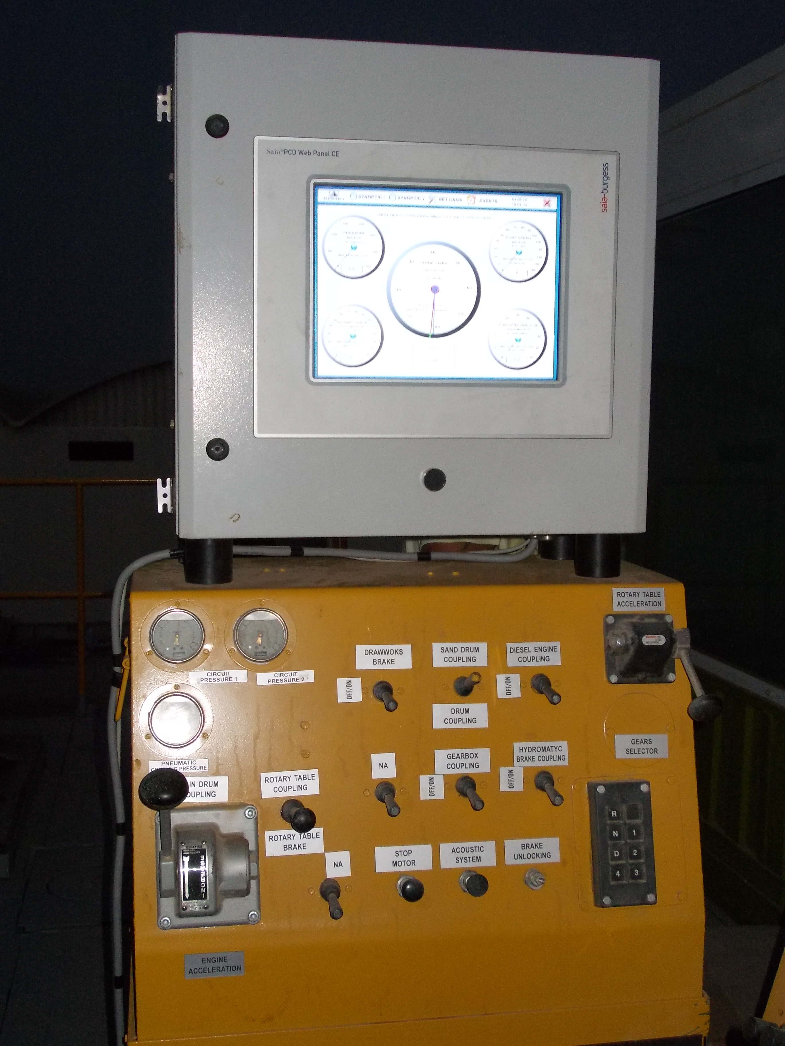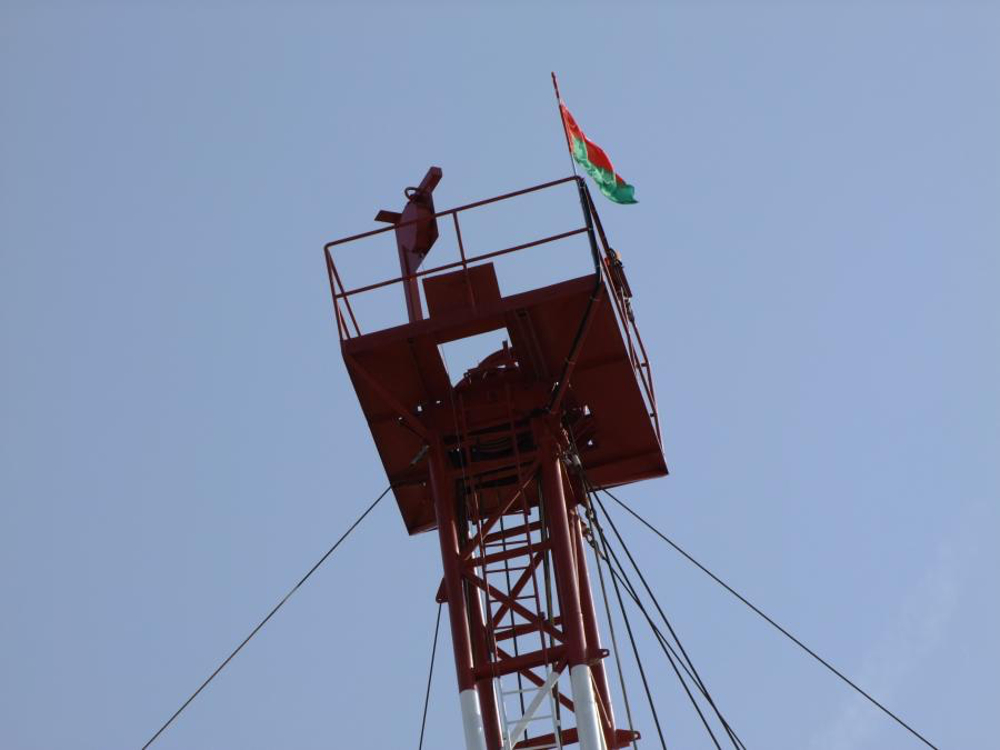 Aerial view of an oil drilling rig in a desert landscape. Man standing on platform near Omani flag and tall metal oil rig against blue sky. Oil drilling rig with safety barriers, stairs, and flags under a clear blue sky. Oil drilling rig with flags against clear blue sky Tall oil drilling rig structure with red, white, and green flag against blue sky. Workers in hard hats and coveralls standing on an elevated platform at an oil rig. Oil drilling rig on a flat, dry landscape under a clear blue sky. Industrial platform with safety and caution signs near large red machinery. Man in a hard hat stands in front of an oil drilling rig under a partly cloudy sky. Illuminated oil drilling rig tower against a dark night sky. Oil drilling rig lit up at night with a crane beside it. Construction site with a crane, drilling rig, and truck under a cloudy sky. Industrial control panel with three touch screens and joysticks. Narrow room with electrical control panels and overhead fluorescent light. Empty conference room with U-shaped tables, black chairs, and screens on the wall. Modern control room with two operator chairs, computer screens, and a whiteboard nearby. Industrial control panel with gauges, switches, and a touchscreen display. Silhouette of an oil rig against a bright sky with clouds and sun. Person standing on a tall red metal tower with an Indian flag against a clear blue sky. Large industrial crane with workers standing on a construction site.